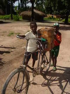 Dla pewności i aby dzieci w Polsce widziały jak same dzieci uczestniczą w budowie szkoły nosząc 1 km cegły na głowie, na rowerach przesyłam ich zdjęcia.
